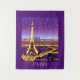 Tapeçaria em uma ilustração impressionista de Paris contra um céu roxo estrelado, com a Torre Eiffel iluminada em gpld