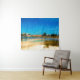 O céu azul profundo está cheio de pássaros brancos, pássaros marinhos pousando e decolando de um pequeno bar de areia na praia de Siesta Key. Esta fotografia original de ZoeSPEAK, de uma bela cena da Flórida nesta tapeçaria de Muro, irá iluminar qualquer espaço com as suas cores cheias.