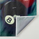Esta tapeçaria tem algumas bolas de piscina pintadas nela.