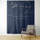 Tapeçaria de parede de Boas-Vindas de Casamento com texto em letra de folha de prata FAUX fancy. A palavra "welcome" é uma IMAGEM produzida para parecer que tem um acabamento em folha metálica cinza, mas é impressa em tinta plana e não pode ser editada. Todo o restante do texto pode ser totalmente editado. Escolha o seu tamanho e personalize o texto, ou clique em "Personalizar ainda mais" para alterar a cor do fundo e o tamanho ou estilo da fonte.