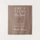 Sinal de Boas-Vindas em Tecido para Chá de Noiva "Ela Está Amarrando o Nó" | Fundo para Fotobooth | Tapeçaria Suspensa | Modelo Editável | Decoração de Chá de Noiva Elegante com Laço Marrom Mocha