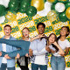 Classe repetitiva Dourada e verde de qualquer pano de fundo de tapeçaria ANO. Para alterar o ano, use a ferramenta "Personalizar" perto da opção de check-out. Faz uma mesa perfeita, mesa de presentes ou cabine de fotos!