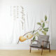 Um pano de fundo de tapeçaria de tecido para o tema "pera perfeita" com peras aquáticas, flores, folhas e ramos. "par perfeito" está na fonte verde moderna de caligrafia. Personalize com nomes e data de chá.