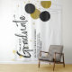 Este simples e personalizado cenário de fotos de festa de formatura grande apresenta caligrafia com estilo manuscrito preto em chic, e tipografia minimalista na moda com estrelas douradas e decorações de balões.
