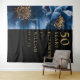 Este elegante marinho azul floral preto e ouro 50º aniversário de casamento, foto de cabine, pode ser personalizado com suas informações na tipografia moderna. Projetado por Thisnotme©