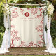 Pessegueiro oriental / florescente de ameixa, flores de primavera em vermelho profundo e marfim com um símbolo simples de felicidade dupla foto retrato de casamento / cabine de fotos / tapeçaria de protetor fotográfico. Uma elegante e romântica design de casamento floral chinesa temida, que é caprichosa, moderna e clássica.