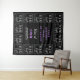 Fundo preto, roxo e branco para a sua empresa, com o seu logótipo num quadro em torno do seu texto personalizado. Adicione seu identificador de mídia social sob ícones roxos de mídia social.