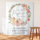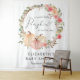 Uma elegante e bonito tapeçaria fotográfica para o chá da sua menina apresentando "uma doce abóbora está a caminho" escrita na tipografia moderna das cinzas moles e um roteiro com uma batida cardíaca, e uma camada aquosa de abóboras e flores de rosa pastel e coral. Adicione o nome da futura mãe e a data do chá.