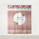 Tapeçaria de fundo fotográfico floral em rosa dourado elegante com área para o(s) seu(s) nome(s) e seu evento. Ideal para casamentos, chá de noiva e de bebê, brunch, aniversários e aniversários de casamento. Fundo de brilho em rosa dourado falso e linda borda pintada à mão em aquarela no topo com flores e folhagens em uma mistura de tons de rosa beije, rosa poeirento, pêssego, marfim, azul nublado e poeirento ardósia, cinza e verde sálvia. Detalhes em letra cursiva manuscrita. Nome(s) e texto do evento cercados por anéis circulares com buquês florais. Convites coordenados e variedade de produtos para eventos disponíveis. Parte da nossa coleção de casamento e eventos "Ethereal em Rosa Beije".
