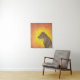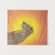 Esta é uma pintura digital de uma leoa com um belo pôr do sol africano atrás dela.