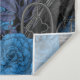 Design de padrão pintado à mão com corvo perfurado sobre uma cerca metálica com uma chave sobre uma fita nas suas faturas e rosas vermelhas
