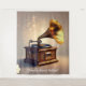 A vintage gramophone silhouette, delicately outlined in elegant lines and touched with golden accents, evokes the timeless charm of classic music. Its refined design is set against a soft, textured background, capturing the essence of a golden age in sound. "Original Image was generated by Meta AI. AI generated artwork. Licensed under CC BY-SA 4.0."