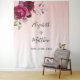 Para um casamento romântico de primavera ou verão. Decorado com flores escuras roxas, borgonha e rosa. Modelos para seus nomes e a data do casamento. Fundo degradê branco e dourado rosa. O texto: O Casamento de está escrito com um estilo moderno de letra manuscrita, letras pretas.