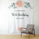 Elegante, clássico, estilo floral moderno para banner de festa de 50 anos (ou qualquer idade), tapeçaria. Decorado com peônias, flores e folhagem de eucalipto pintadas à aguada em tons rosa e dourado. Com o texto: 50º Aniversário escrito em um estilo de letra manuscrita preta moderna e grande. Personalize e adicione um nome e uma data. Pode ser usado como banner de boas-vindas, decoração de parede para a festa ou como pano de fundo para fotos.