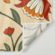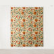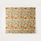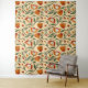 Seamless floral pattern featuring orange and red flowers with green leaves on a beige background. The design is vibrant and decorative.