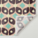 Seamless geometric pattern with dark brown leaf shapes, beige circles, and teal diamond accents. Retro and symmetrical design creates a vintage feel.