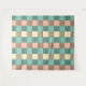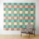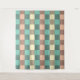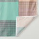 A seamless plaid pattern with alternating pastel squares in turquoise, cream, and beige. Each square is filled with a crisscross grid design, creating a vintage and orderly feel.