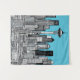 Tapeçaria num desenho preto e branco de Seattle, Washington Skyline com céu azul