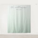 This wedding backdrop features a minimalist design with a soft gradient transitioning from light mint green to a slightly darker shade, creating a serene and calming atmosphere. The elegant cursive script font is centered, offering customizable space for names, while the smaller sans-serif text below provides room for dates. The modern and sophisticated style emphasizes simplicity and elegance through its use of negative space and restrained typography, making it perfect for formal occasions. Its tranquil mood and understated aesthetic make it an ideal choice for weddings or other celebratory events.