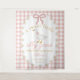 Perfect for a baby girl shower, goose themed baby shower, soft pink gingham baby shower, preppy baby shower theme, or vintage inspired celebration, this personalized baby shower backdrop tapestry brings charm, warmth, and timeless style to your event while creating a beautiful setting for photos you’ll treasure forever.