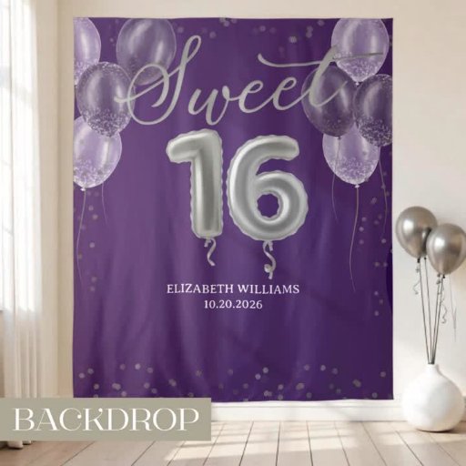 O "Silver Foil Sweet 16 Balloons Purple Backdrop" é uma decoração espantosa e festiva projetada por CaMiDesigns. Este pano de fundo apresenta um fundo roxo impressionante, enfeitado com balões de folha prateada, criando um design elegante e atraente que é perfeito para uma celebração Sweet 16. Isso adiciona um toque de sofisticação e festividade à decoração do seu partido. Para pedidos, envio, informações sobre o produto e assistência adicional, entre em contato diretamente com o Atendimento ao cliente da Zazzle.
