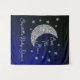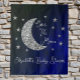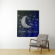 Sobre o chá de fraldas da lua com lua de prata e estrelas sobre um fundo negro e azul do céu