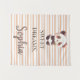 Traga um senso de calma e charme para o espaço do seu pequeno com esta tapeçaria personalizada de panda tudo-em-um. Este design apresenta um panda fofo, colocado contra um fundo moderno de listras suaves em pêssego e branco.