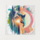 Esta tapeçaria é uma representação enérgica de um golfinho saltando das ondas do oceano contra o pano de fundo de um raio de sol. O efeito aquarela e vibrante espalhamento de cores criam uma atmosfera dinâmica e viva, capturando a alegria e a vitalidade da vida aquática. O brilho do sol infunde a cena com calor, destacando o espírito lúdico do golfinho. O trabalho de arte incorpora a beleza dos nasceres do sol náuticos, oferecendo um cheio de movimento e cor que seria perfeito para qualquer praia ou decoração costeira, ressoando com quem deliciasse a energia ilimitada do oceano.