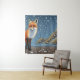 Um personagem fox divertido e fofo de um livro de histórias numa noite de inverno estrelada.