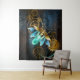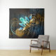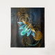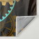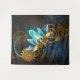 Barbeiro véu com asas transparentes azuis e lâmpada verde sobre fundo vestido, marrom, texturizado. Estilo Steampunk.