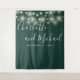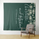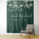 Com bonito luzes de cordas e guião de tipografia chic, este pano de fundo da cabine de fotos verde-esmeralda chic pode ser personalizado com seus nomes e data especial. Projetado por Thisnotme©