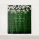 Um pano de fundo da cabine de fotos rústico com bonito sábio, folhas de lilás e luzes de cordas em um fundo de painéis de madeira verde esmeralda. Personalize com seus nomes e data especial. Perfeito para casamentos, noivados, chás de panela ou qualquer outra ocasião especial. Projetado por Thisnotme©
