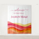 Printed as a soft, lightweight tapestry, this welcome sign offers a fresh alternative to traditional signage. It adds texture and visual impact while remaining easy to hang, transport, and reuse after the celebration. The modern sunset palette creates an inviting, joyful atmosphere that feels perfect for beach, destination, resort, and summer weddings.