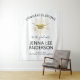 Pano de Fundo de Festa de Graduação. Aparência de folha de ouro falso com boné de formatura e explosão de estrelas centralizado em dourado e preto elegante sobre fundo branco. Totalmente personalizável, clique em Editar Design para alterar a cor do fundo, tamanho e estilo do texto. Configuração de fundo sofisticada, mas festiva para a celebração do seu graduado.