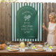 Decore o fim de semana de despedida de solteira com estilo esportivo com esta tapeçaria chique com tema de tênis. Apresenta uma ilustração de coquetel e raquete verde e a frase divertida "Último swing antes do anel". Perfeita como pano de fundo para fotos, banner de parede de quarto de hotel, decoração de área de boas-vindas ou decoração de suíte para viagem de garotas.