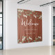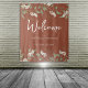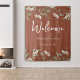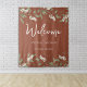 Esta design apresenta um cenário de terracotta verde simples de casamento floral com uma amperse de caligrafia na moda trendy, uma folhagem de folha botânica, um design mínimo minimalista simples, um estilo de jardim de flores brancas, uma placa de boas-vindas de casamento, uma decoração elegante recepção de casamento, um estilo clássico de casamento tradicional, uma decoração de casamento simplista, uma cor de casamento na moda trendy.