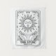 A beautiful minimalist tarot card design featuring 'The Stoic'. This artwork illustrates a serene sun with closed eyes, radiating calm energy over open meditative hands. Designed in a clean vintage line art style with Roman numerals (XVII), symbolizing balance, self-control, and inner peace. Perfect for fans of stoicism, tarot aesthetics, and mystical minimalist art. Great for those who value mindfulness and ancient wisdom.