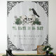 Este elegante gótico "Til Death Do Us Part", retrato do chá de panela irlandês décor apresenta ilustrações temáticas desenhadas manualmente em irlandês e gótico, mostrando 2 crânios e um corvo negro enfeitado com rosas verdes, folhas, bagas, flores silvestres e trevas verdes. Fundo Elegante de cinza mole. Todo texto é editável.