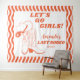 Vamos lá Garotas, tapeçaria personalizada com tema cowgirl western para festa de despedida de solteira em padrão de listras onduladas terracota e branco com botas de cowboy e chapéu de cowboy é perfeita como pano de fundo para fotos da festa de despedida de solteira. Personalizado com seu nome e o slogan "último rodeio". Celebre seu chá de panela com estilo com o tema perfeito de festa country retrô, o tema perfeito para o amante de cavalos, tema vintage do Faroleste selvagem para a noiva cowgirl e suas damas de honra.