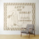 Vamos lá, garotas, tapeçaria personalizada de tema cowgirl western para festa de despedida de solteira em padrão de listras onduladas bege e creme com botas de cowboy e chapéu de cowboy é perfeita como pano de fundo para fotos da festa de despedida de solteira. Personalizado com seu nome e a frase "último rodeio". Celebre seu chá de panela com estilo com o tema perfeito de festa country retrô, o tema perfeito para o amante de cavalos, tema vintage do Far West para a noiva cowgirl e suas damas de honra.
