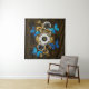 Composição do relógio de aço redondo com discagem numérica romana preta, decorado com engrenagens de ouro e latão, borboletas morfo azuis e lentes danificadas sobre fundo listrado castanho. Estilo Steampunk.