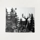 Veado emerge de pinheiros e é cercado por flores silvestres em design simples da vida selvagem.