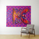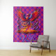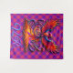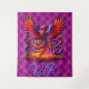 Cor brilhante e vívida do púrpura, magenta, laranja, azul e amarelo; com uma fênix