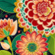 Retro floral brilhante e alegre, tapeçaria hippie vibe. Flores bonitas e detalhadas em tons de vermelho, laranja e amarelo.