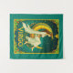 Tapeçaria em uma mulher com túnica branca fluindo, com uma flor em seu cabelo, sentada graciosamente em uma lua crescente ouro, cercada por estrelas. Ornamentado Art Nouveau enquadrado com flores, e a palavra "VIRGO", completam a ilustração celestial zodiac.