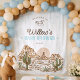 Create an amazing photo backdrop for your baby shower with this wall tapestry. Get ready to saddle up for a rootin'-tootin' cowboy baby shower that captures the spirit of the Wild West! This charming design features a playful rope font that weaves its way through hand-illustrated scenes of rodeos and cowboys, complete with galloping horses and desert landscapes. Perfect for any boy's baby shower, this collection includes whimsical invitations, delightful decor, and fun favors, all infused with a dash of western flair. From the moment guests arrive, they'll feel like they've stepped into a lively ranch adventure, celebrating the arrival of your little buckaroo in style! See the entire collection for more matching items!