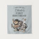 "I'll eat you up, I love you so!" Create a roaring good time with this customized tapestry banner inspired by the timeless tale, Where the Wild Things Are. Perfect for your little wild one's debut milestone, this large hanging display features the iconic Max and monster illustrations to set a playful, nostalgic scene without needing complex installation. It serves as a fantastic focal point for cake smashing photos or a grand entrance to the rumpus, personalized with your child's name to make the memory last forever.