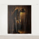 Surreal oil painting of a weary man in vintage suit & fedora, bent forward under the giant symbolic wind-up key in his back — representing the mechanical office routine, employer life as a wind-up toy, endless repetition, wasting life in the corporate machine. Warm golden cinematic light & deep moody shadows create powerful atmosphere of burnout, loss of freedom, soul-crushing monotony and existential fatigue. Perfect modern surrealism, psychological allegory, corporate critique, anti-work, shadow work or introspective wall art for offices, therapy rooms, studios, bedrooms or anyone trapped in the daily grind. High-quality print preserves rich oil texture and emotional depth.