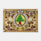 Em letras inglesas a palavra "LÍBANO". Inclui o símbolo do Deus Sumério Antigo HUMBABA Protegendo a Floresta de Cedro.