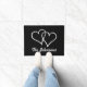 Maleta de porta branca e preta com corações e nome de família. Faça o seu próprio formato de porta interior/exterior personalizado com cores de fundo e palavras personalizadas. Adicione sua própria mensagem de boas-vindas, nome da família, monograma, sobrenome ou citação engraçada. Bela ideia de presente para novas casas/abrigos, locais de casamento, dormitório, loja, compro, escritório etc. Típica de script de tendências com símbolo de amor interbloqueado. Tema romântico. Modelo personalizável Crie seu próprio tapete/tapete de entrada para a porta da frente/entrada ou hall. Decoração/decorações personalizáveis para sua casa acolhedora. Presente bonito para casal, noiva e noivo, marido e esposa.